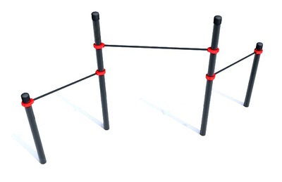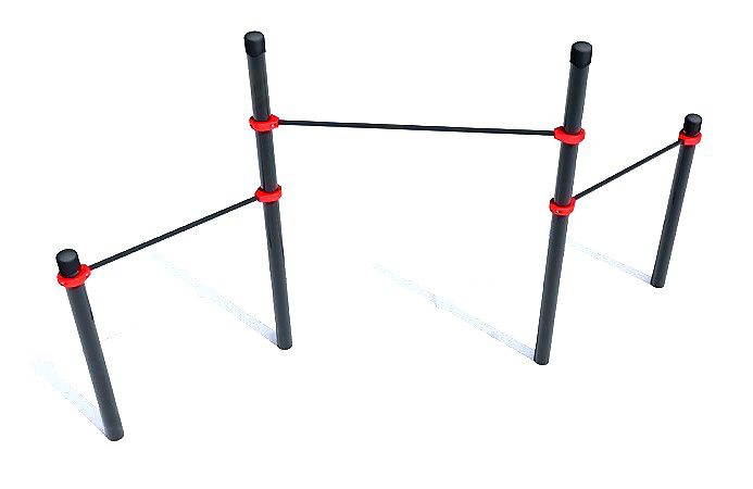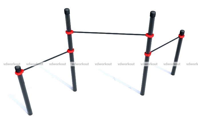 Комплекс состоит из четырёх вертикальных опорных столбов высотой: 2 шт – 2300 мм, 2 шт – 1400 мм. Три перекладины для подтягиваний длиной 1200 мм, 1700 мм, 1200 мм крепятся при помощи хомутов между столбами 1400–2300 мм, 2300–2300 мм, 300м–1400 мм на высоте 1300 мм, 1800мм, 1300 мм соответственно.
