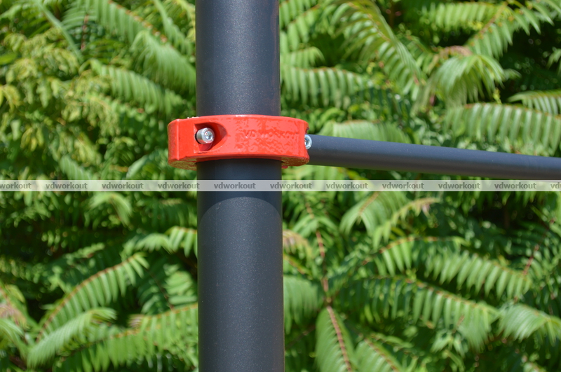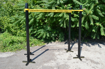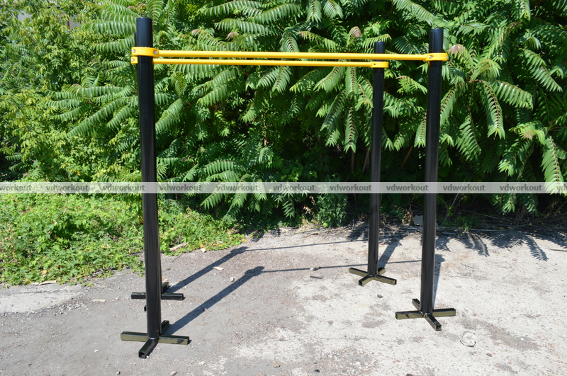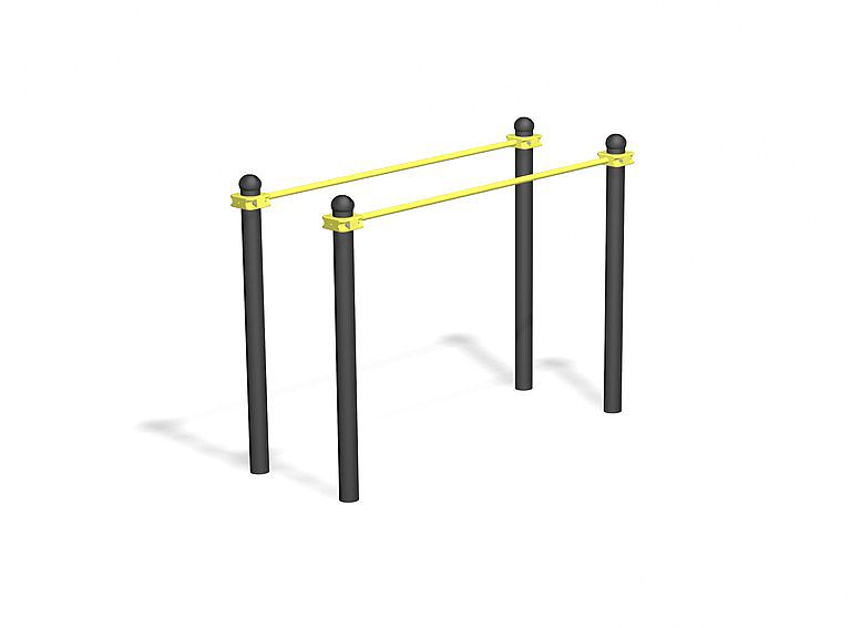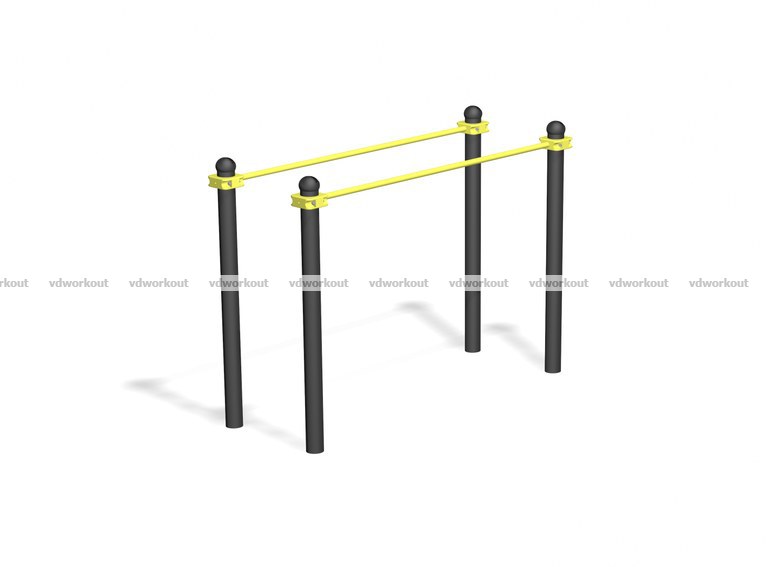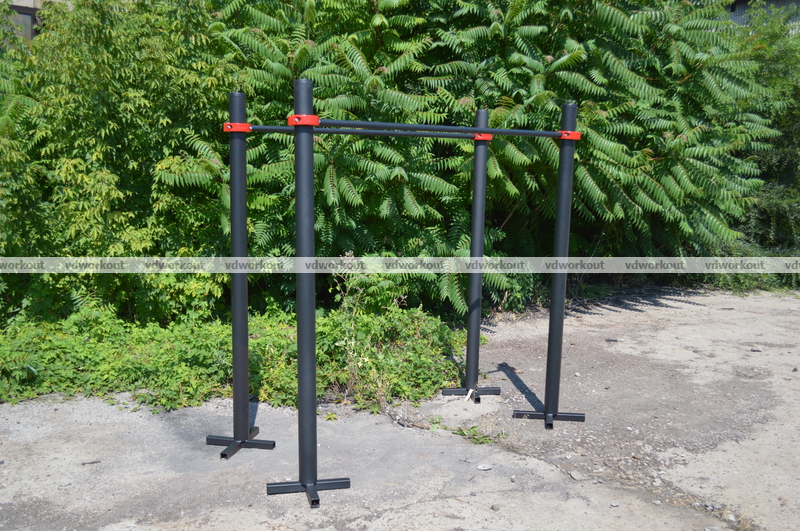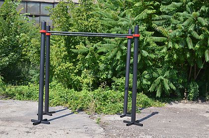 Комплекс состоит из четырёх вертикальных опорных столбов высотой 1400 мм и двух горизонтальных перекладин длиной 1700 мм. Расстояние между опорными столбами 600 мм. Перекладины крепятся к опорным столбам при помощи хомутов на высоте 1300 мм от поверхности резинового основания.