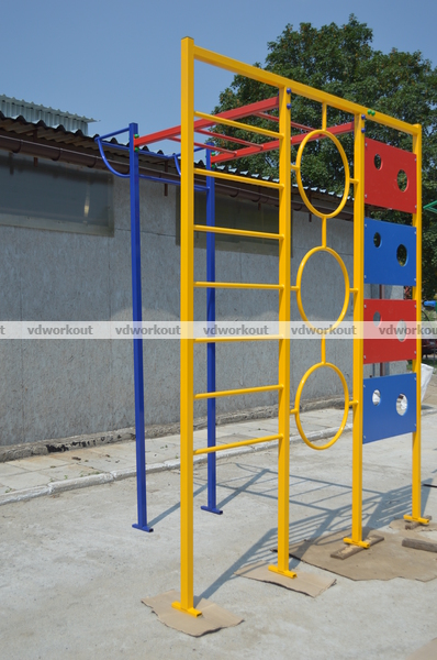 Детский игровой комплекс "Бамбино" превлечет самую шуструю ребятню. Плюсом детского комплекса является сочетание таких элементов как шведская стенка, кольца для лазания, скалолазная стенка, рукоход и турник. Детвора по достоинству оценят ДСК "Бамбино", ведь каждый из них найдет свой любимый спортивный элемент, а в игровой форме поможет развивать ребёнку моторику, смекалку и комуникабельноть в общении и командной игре с товарещями. Наличие турника поозволит и подросткам прорабатывать мышцы плеча (бицепсы). Разрабатывая игровой комплекс "Бамбино" наши технологи учли все пожелания не только детворы но и родителей, заботящихся о своём ребёнке. Все кремёжные соединения защищенны колпачками , предотвращающими травмы для ребёнка, и не менее важное от вандализма.