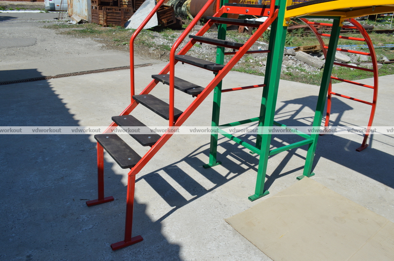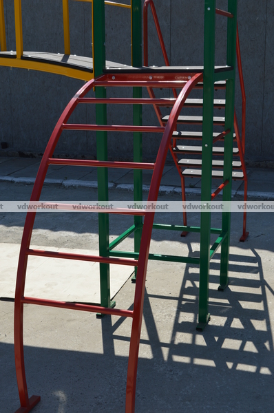 Детский игровой комплекс "PlayGround-2" - современное развликательное игровое оборудование. В нем предуспотренно такие спортивные элементы - Горка, Мостик, Дуга-Лазалка, Башенки и Лесенка. Все яркие и разнообразые элементы комплекса приведут в восторг малышей от 3 до 14 лет. Детский игровой комплекс "PlayGround-2" купить который, можно в нашем интернет магазине с бесплатной доставкой. Благодаря использованию в производстве высококлассных материалов, а также новейшему оборудованию, этот комплекс является абсолютно безопасным. Металлический спортивный уголок "PlayGround-2", для дворовых площадок, так же хорошо разместить во дворе частного сектора и на дачном участке.