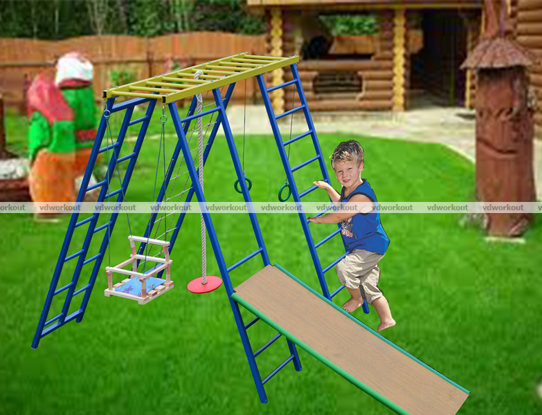Компания VD-Sport с заботой о самых маленьких разработала детский игровой комплекс Ухтышка, не занимающий много места,но при этом многофункциональный спортивный комплекс позволяет не только играть но и заниматся физическим развитием ребёнка. Наличие детского навесного оборудования позволит малышам найти себе занятие по душе, а вдвойне приятно, что это происходит на свежем воздухе.