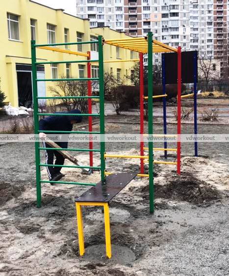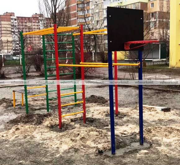 Гимнастический комплекс "Плей Граунд -3" – предусматривает занятия как для младшых так и старших поколений. Для детворы это активное и правильное физическое развитие, а взрослым помощь в поддержании хорошей физической формы. При занятиях на данном виде спортивного оборудования, благодаря наличию разновидностей турников задействованны все группы мышц спины, рук и предплечья, растущее поколению наличие такого количества турников поможет укрепить позвоночник и исправить осанку. Лавка и брусья для пресса поможет прокачать мышцы брюшного пресса, подтянуть мышцы ног..