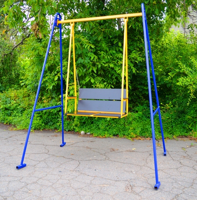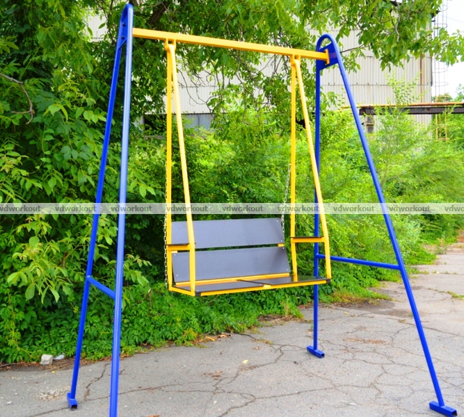 Красивая, яркая, удобная качель-скамейка, плавно покачивающаяся — отличное место для летнего отдыха на открытом воздухе