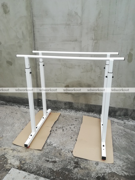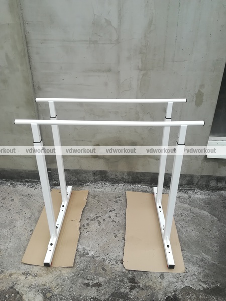 Брусья напольные переносные имеют небольшие размеры и позволяют заниматся на тренажоре как взрослым и детям, за счет уснановки разной ширины и высоты. Такие брусья можно поставить в квартире,офисе или на улице. Одновременно могут выполнять упражнения 2 человека.