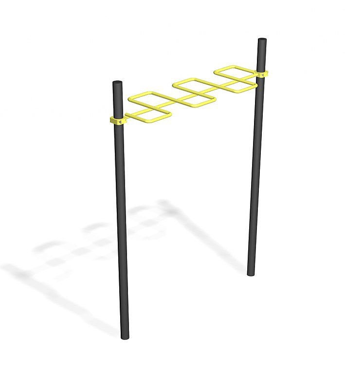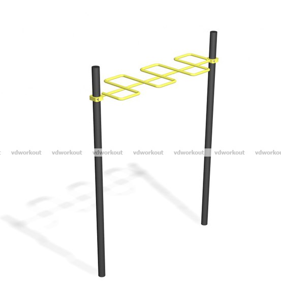 Рукоход-змеевик длиной 1700 мм расположен на высоте 2350 мм и крепится к вертикальным опорным столбам высотой 2600 мм при помощи хомутов. Шаг перекладин рукохода 300 мм.