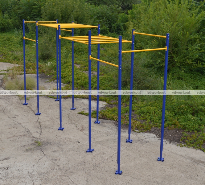 Материал: труба 50х50 мм, стенка – 3 мм;Рекомендуемая глубина для установки ( бетонирования -550 мм)На нашем сайте vdworkout.com также представленны различные модели уличных площадок и комплексов: