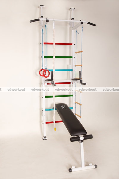 Ещё одним большим плюсом является наличие детского навесного набора, который в игровой форме поможет Вам увлечь вашего ребёнка занятием спорта. С шведской стенкой «Чемпион плюс», Вы сможете выполнять самые разнообразные упражнения, направленные как на развитие всего тела, так и на определённую группу мышц.Комплектация: