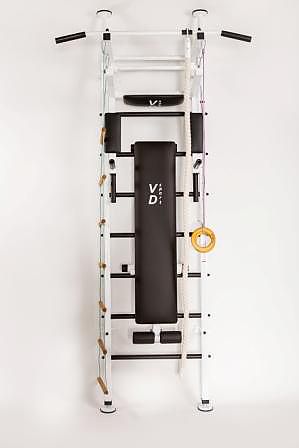 В комплектацию шведской стенки VD Демос входят: брусья с подставкой под штангу и детское навесное оборудование — канат, кольца, веревочная лестница. Брусья оснащены мягкими подлокотниками, спинкой и пластмассовыми ручками, поэтому Вам будет еще удобнее и комфортнее выполнять комплекс упражнений.