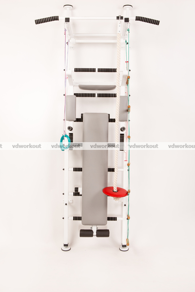 Преимуществом данной модели, я вляется наличие неопреновых накладок защищающих от скольжения с перекладин, безопасность малышей. Шведская стенка Демос Steel имеет переставной турник для удобства регулировки по высоте турника для детей ( таким образом турник на шведской стенке можно переставить на любую перекладину шведской стенки), крепеж турника является безопасным, что даст возможность не только безопасно выполнять подтягивания Вашему ребенку, без опасений падения с высоты, но и использовать турник, установив его на одну из нижних перекладин, как упор для отжиманий.