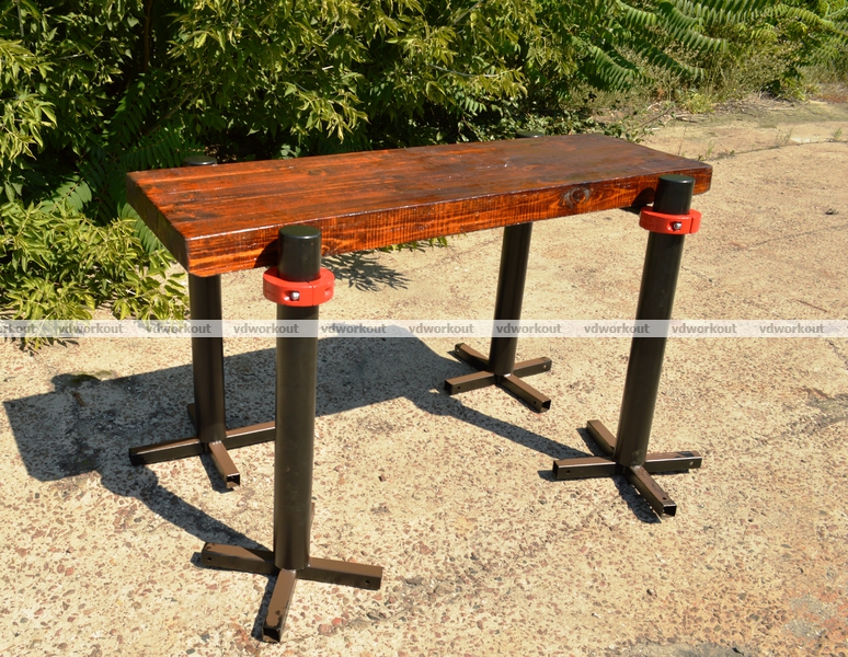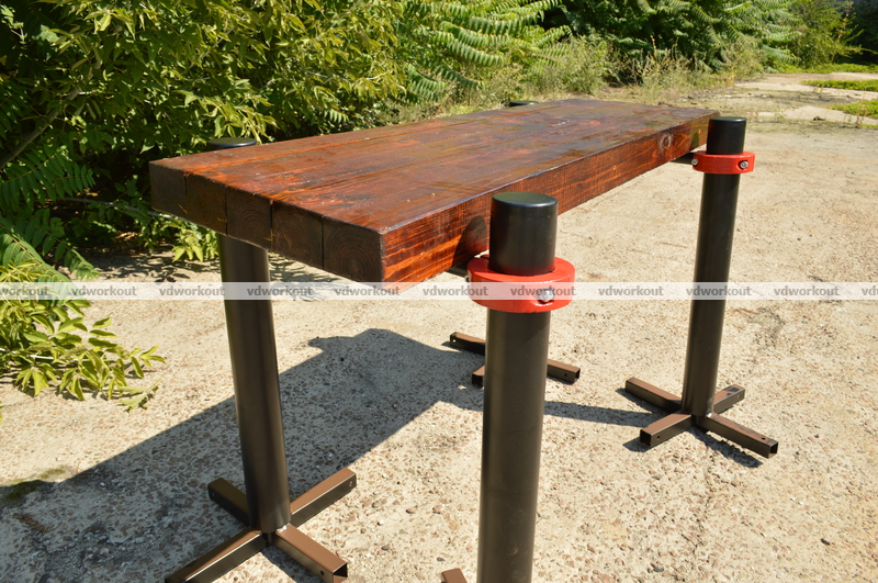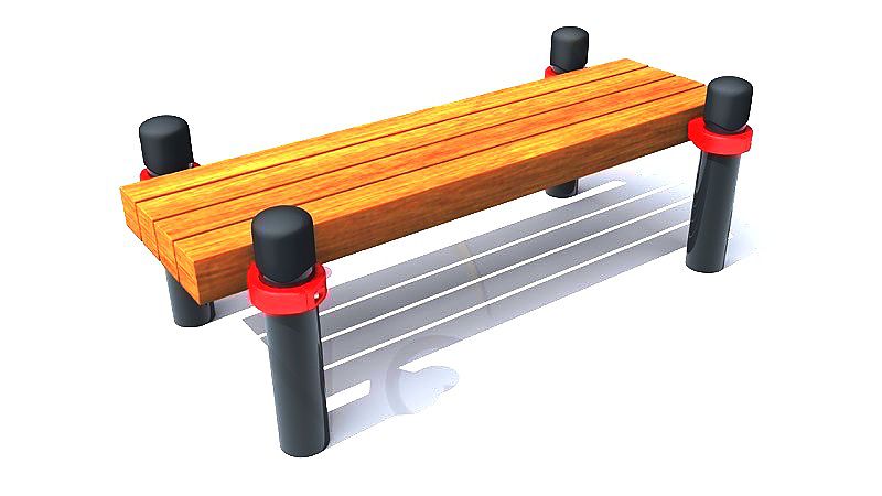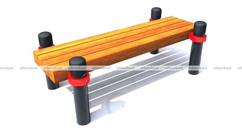 Длина скамьи 1500 мм, ширина 500 мм. Деревянный брус скамьи крепится к вертикальным опорным столбам. Высота скамьи 300 мм от поверхности основания для бетонирования.
