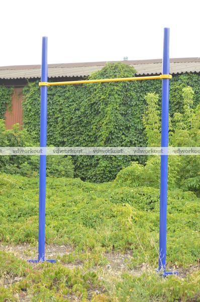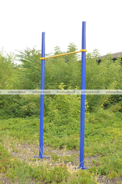 Турник состоит из двух вертикальных опорных столбов высотой 3000 мм и горизонтальной перекладины длиной 1200 мм.