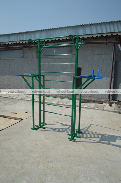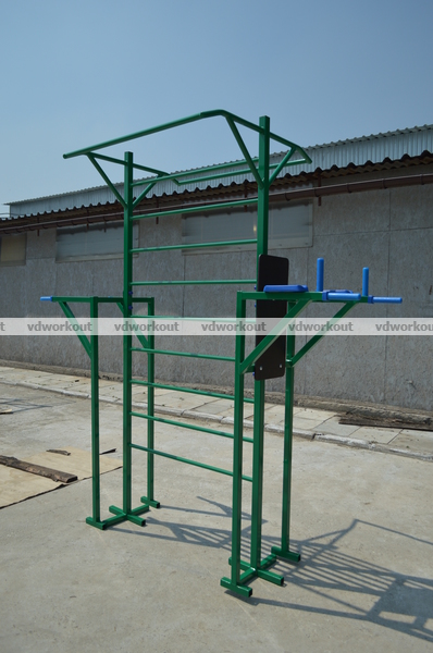 Уличный спортивный комплекс "Силач" разработан для проработки мышц плечей (бицепса) и пресса. Наличие на брусьях спинки с флагостойкой фанеры и подлокотниками из пенополиуритана позволяют с комфортом выполнять упражнения на пресс, Наличие двух турников даёт возможность заниматся двум участникам одновременно.