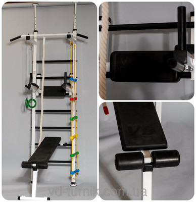 Элитная шведская стенка для сильных и уверенных в себе людей. Усиленная металлическая конструкция, брусья с пенополиуретановыми подлокотниками и спинкой, скамья "комби" с пенополиуретановой спинкой рассчитаны на максимальный вес пользователя - 180 кг! с полиуретановой лавкой, спинкой и подлокотниками