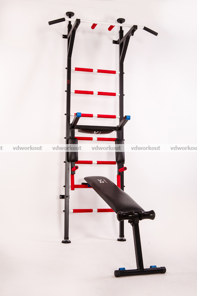Вылет брусьев - 450 мм, в положение турник-брусья - 620 мм.